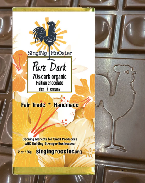 • 70% Dark - Organic Haitian Cocoa Beans, Organic Cane Sugar, Organic Cocoa Butter